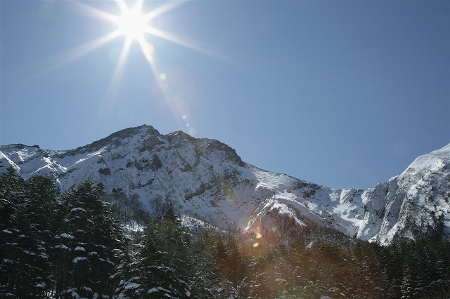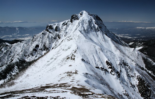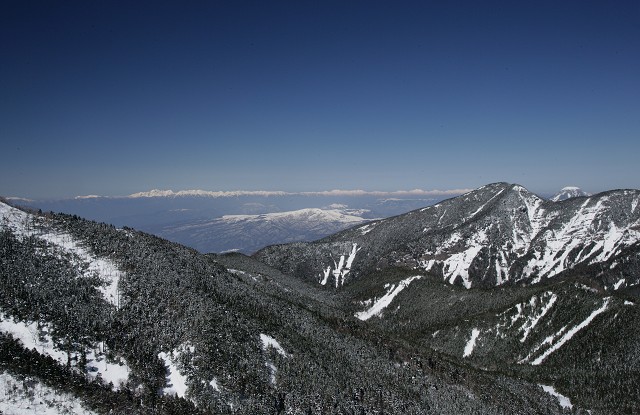 そして北アルプスも白く輝く峰々を連ねています。青い空に白い峰、冬ならではの展望です。