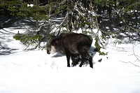 赤岳や阿弥陀岳を後に下山することにします。今回も途中でカモシカ君に会えたらいいな、なんて思いながら歩いていたら、なんと目の前にお昼寝中のカモシカのお爺さん?が。私たちの方をちらっと見ましたが、写真のようにまた目を閉じてしまいました。