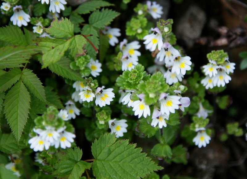イブキジャコウソウと共に群生していたのがこのミヤマコゴメグサです。登山道脇や岩場の陰に無数の花をつけて目を楽しませてくれました。