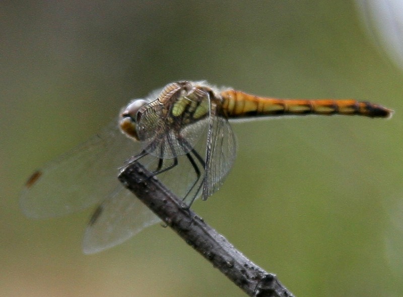 阿弥陀岳の空には無数のトンボが飛んでいました。山頂で足元の枝の先に止まったトンボを撮って見ました。