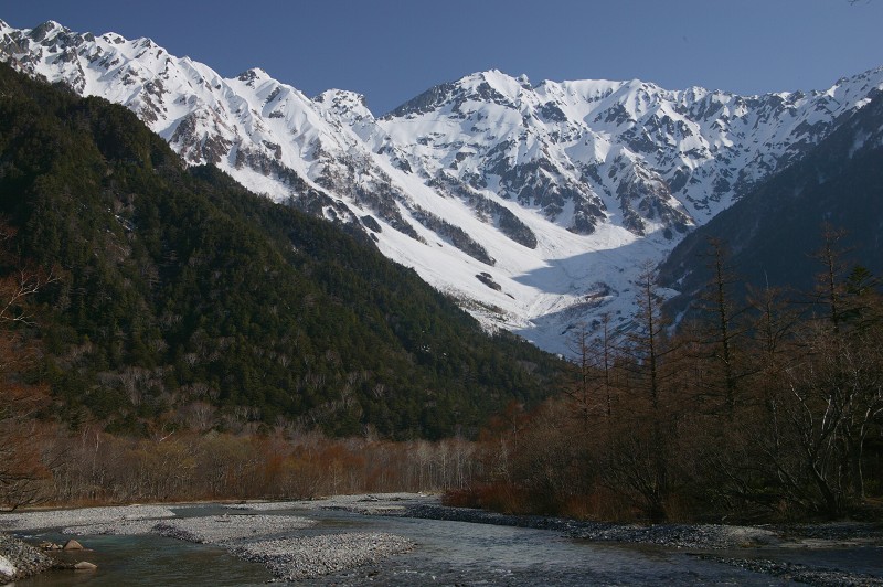徳沢付近、川原から前穂高