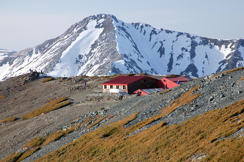 稜線上に建つ蝶ヶ岳ヒュッテ