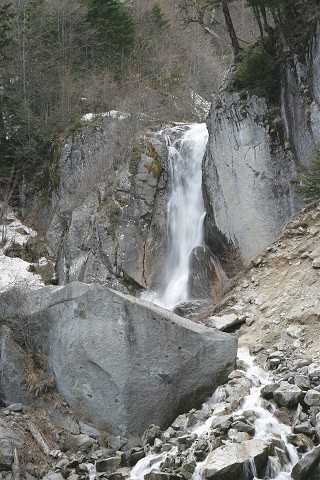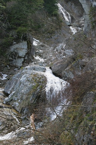 春のどんどこ沢、滝と花