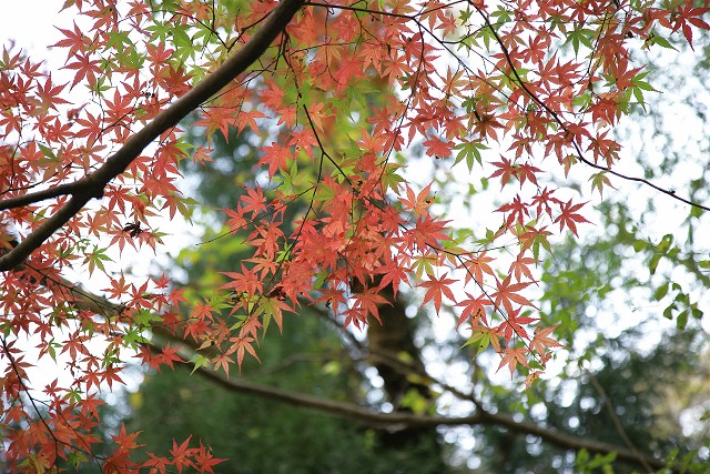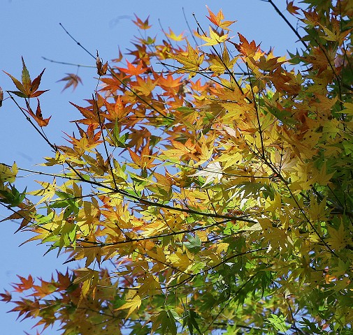大きな山モミジの木がたくさんあって見上げるほど高い枝の先端は真っ赤に色づいていました。