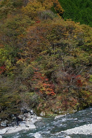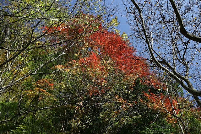 丹沢湖から中川温泉を経て奥へ行くに連れて山々はすっかり秋の装いでした。早々と葉を落としてしまった木々に混じって、