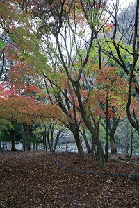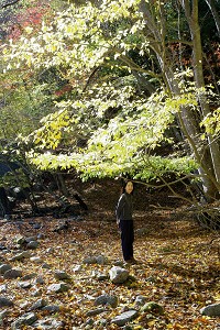 駐車場前のモミジです。今回はのんびり落ち葉を拾いながら歩きましたので、つり橋から本棚の滝まで登り2時間、下りは1時間ほどかかりました。