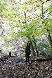 色づいた葉をくぐり抜けて秋色の光や風、優しい秋がいっぱいでした。落ち葉の絨毯の上を緩やかに本棚の滝まで登って行きました。