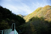 つり橋近くまで戻ってきました。付近の山はもう冬支度です。