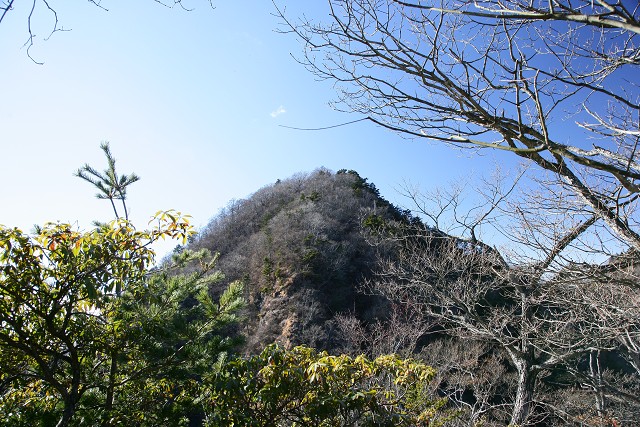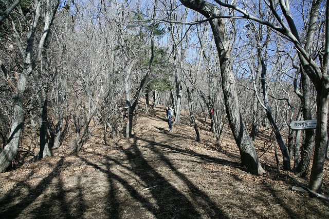 もうすっかり葉を落とした木々も青空に向かって立っています。なんて気持ちの良い尾根歩きでしょう。青く澄み切った空とピーンと張った空気、それに落ち葉の香り、さらに急になった斜面を登って行きます。