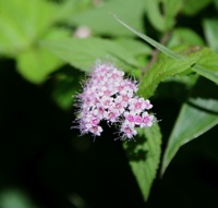 それまで殺風景だった登山道も稜線が近くなるとシモツケのピンク色が目立ってきました。