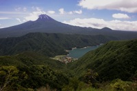 山頂から南の展望は富士山と西湖、遠く山中湖が光って見えていました。