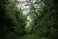狭い谷は鮮やかな緑に覆われて眩しいくらいでした。この後十一ヶ岳への登りと十二ヶ岳への登りが大変でした。十一ヶ岳と十二ヶ岳の間にかかる小さな吊り橋は不安定でちょっと嫌な感じ、そこから