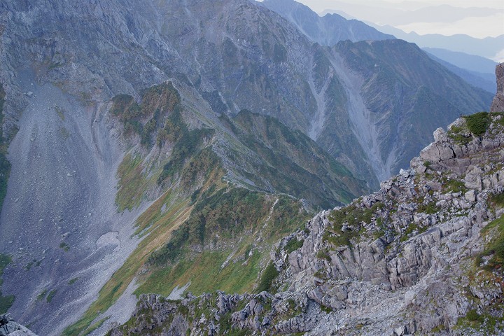 だいぶ下ってきました。稜線から振り返りました。キレットのコル近くまでやってきました。