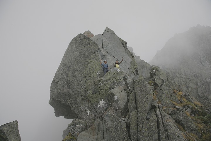 ピークの岩の上に座って記念撮影です。ここでは後ろを見たらいけません。
