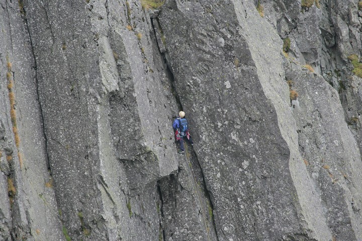 滝谷を登るクライマーです。暫く見学させてもらいましたが、なかなか上に進みません。苦戦を強いられているようでした。