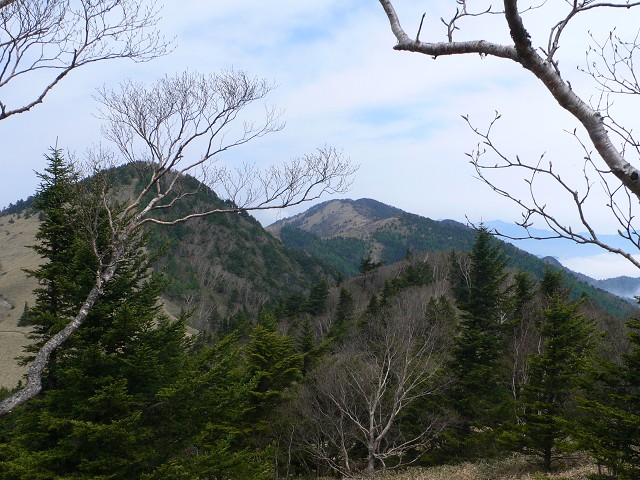 小さいピークを越えて、これから縦走する標高2014mの小金沢山が見えてきました。稜線を辿り、一番奥のピークが黒岳です。