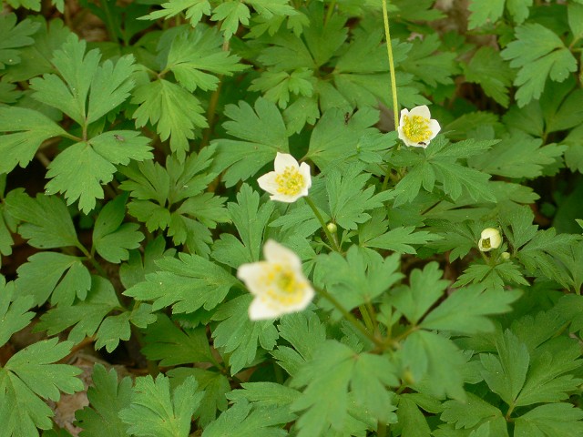 湯ノ丸峠、駐車場脇にはニリンソウの群生地がありました。まだ咲き始めて間もないのでしょう。たくさん蕾をつけていました。