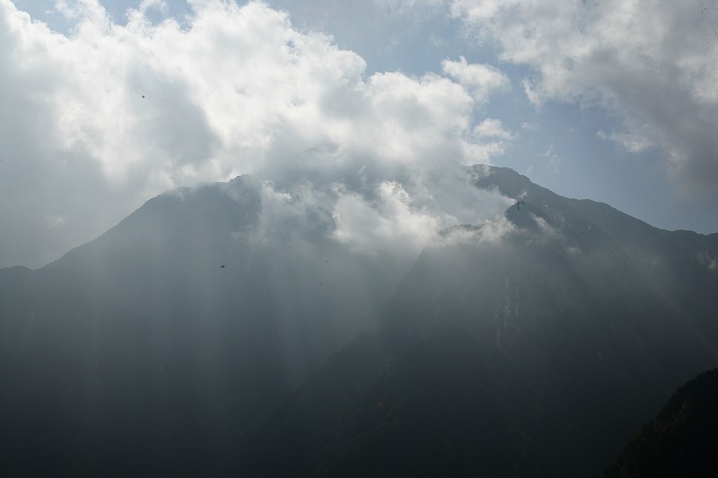 ちょうど太陽が真上に来てしまいました。甲斐駒は雲と光の中に隠れてしまっています。時折雲が途切れて山頂を覗かせていましたけれど、なかなか思うような写真は撮れませんでした。