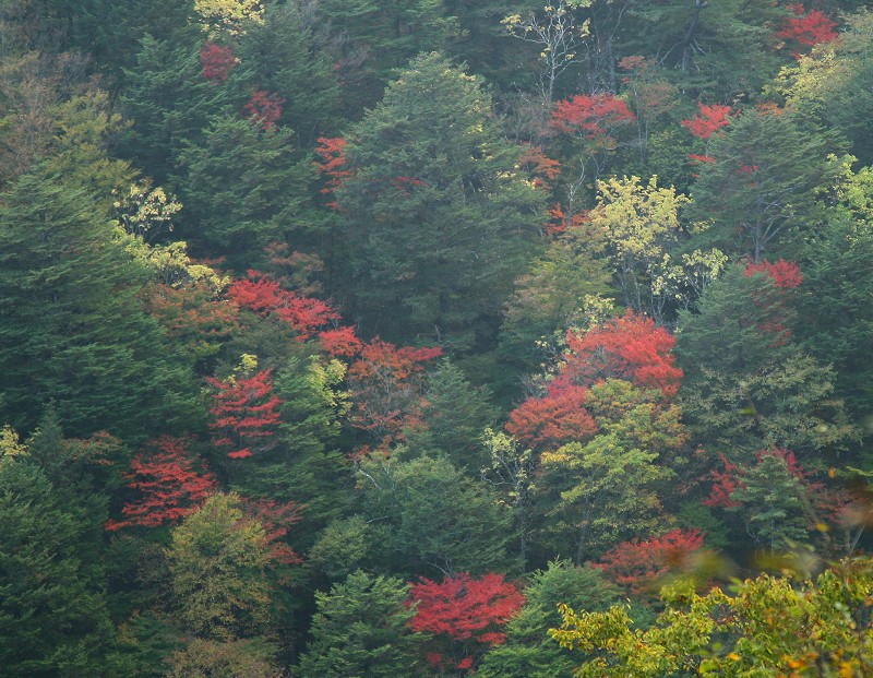 林道から山肌の紅葉