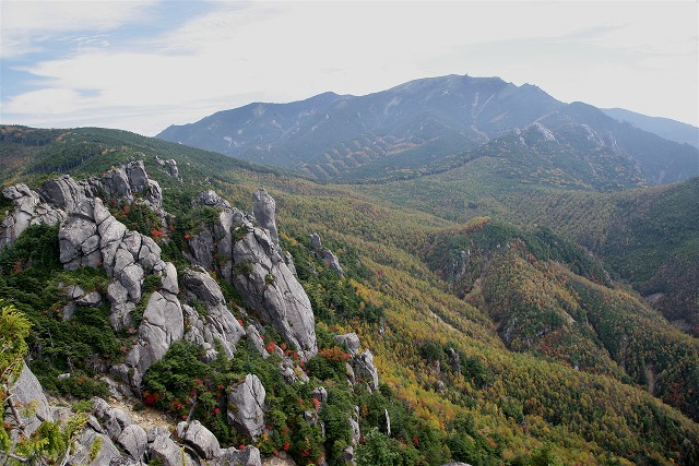 大ヤスリ岩の真横まで登ってきました。山頂までは後30分ほど、山々の連なりと秋の美しい空と雲、ほんとに綺麗でした。