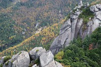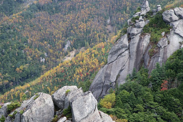 山頂の岩の上に立つと、周りに黄葉の海が広がります。少し空が曇り始めました。時間はまだ11時、もう少し景色を楽しんで下山します。