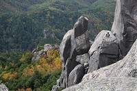大ヤスリ岩を登るクライマーです。なんと命知らずの人もいるものですね。この後右の垂直の壁を登攀していました。