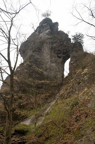 駐車場から少し車道を引き返したところが登山口です。今まで見たこともない奇妙な形の岩や石門が迎えてくれました。