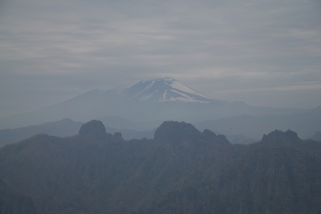 石門や奇妙な岩と遊んだら、登山道に戻って山腹につけられた中間道を行きます。暫く行くと、稜線上を行く上級者コースとの分岐に出ます。これを左(上級者コース)に取り、急登を一時間ほど登ると、稜線上にある相馬岳と白雲山のコルへ出ます。展望の良い白雲山の頂上では裏妙義と浅間山が出迎えてくれました。