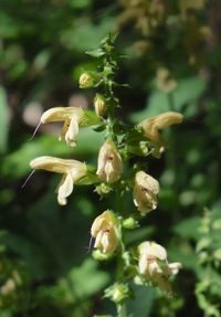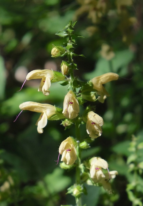 初めて出会いました。口を大きく開けたような面白い形の花ですね。