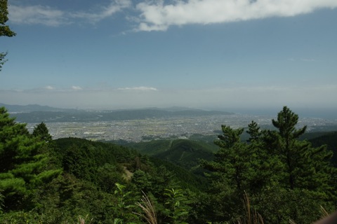 私たちもお昼を食べたら早々に下山することにしました。下山は登ってきた最乗寺のある登山口の反対側、宮城野へ下ることにしました。山頂直下から海岸線の展望です。
