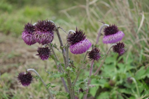 見晴らし小屋から少し登ると、杉林の尾根道から南へ回り込み明るいススキの原っぱに出ます。以前よりススキが少なくなっている気がしたのですが...そのかわり、秋の花々が咲いて目を楽しませてくれました。