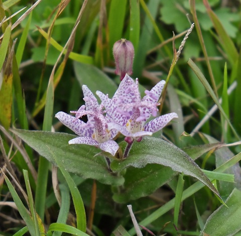 たくさん花をつけているものは一列に並んで咲いていたり、一厘、二厘だけのものがあったり、面白い咲き方です。この付近には背丈があまり高くないトリカブトも咲いていました。