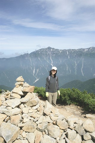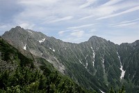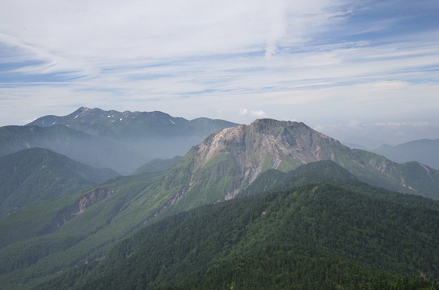 少し登って振り返ると、荒々しい焼岳と遠く乗鞍岳です。