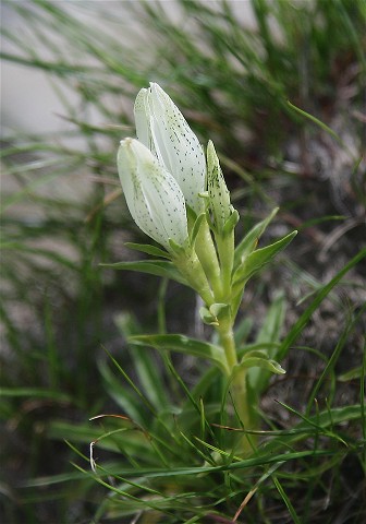 岩場の陰に咲いていたトウヤクリンドウです。白く透き通るような花びらはあまりに控えめで気付く登山者はいないようでした。