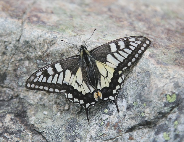 山頂に着いたその時、大きな蝶がやってきて足元の岩に止まりました。こんなに高いところです、ちょっとお休みして羽を休めていたのでしょう。