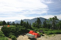 山頂は人が多く座ってゆっくりお昼を食べる場所もありません。一旦ここを下り、すぐ下のピークに行ってお昼にしました。