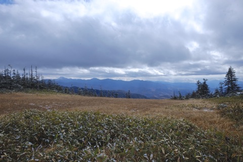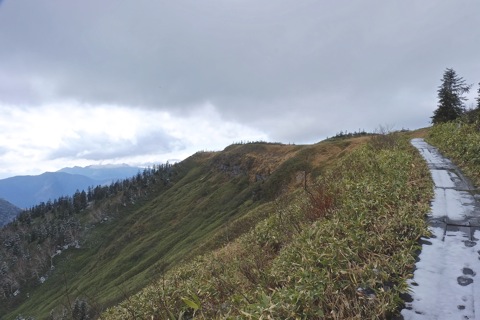 アヤメ平を振り返るとこんな感じ。写真でも分かるように、日が雲に隠れ、2000m上空は風が冷たく寒かったです。