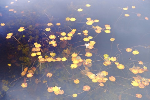 水に浮かぶヒツジグサも紅葉するんですね、赤や黄色に染まってました。山の鼻までやって来ると数名の登山者や観光客が帰り支度をしていました。