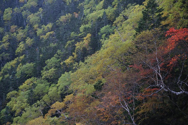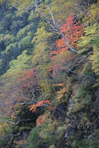 だいぶ下って来ると甲斐駒は姿を消しましたが、付近の紅葉のすばらしかったこと。