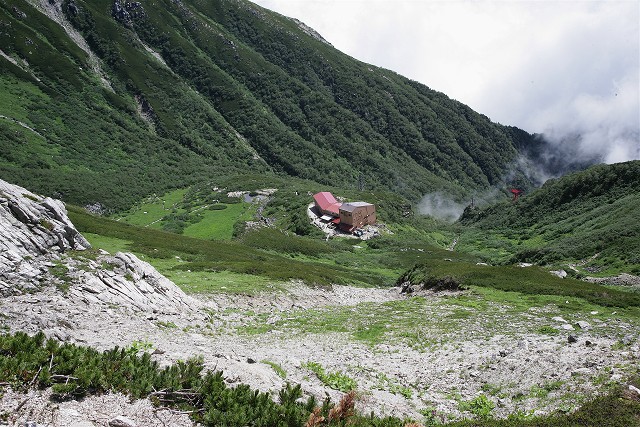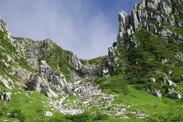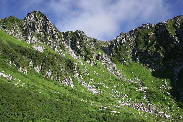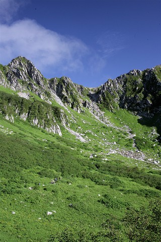 カール底から稜線まで緑一色です。空は青く爽やかな風が吹いていました。