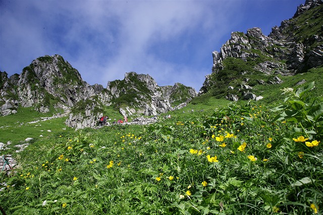 宝剣岳とお花畑