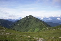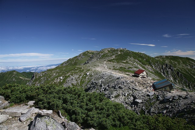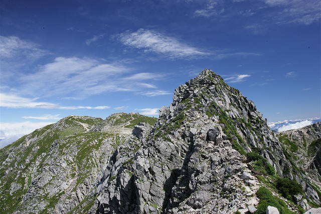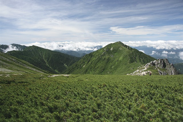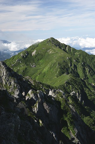 ハイマツ帯の緑に覆われる三ノ沢岳、綺麗な三角形をしています。宝剣を超えてこの山に行く筈でしたが、今回は無理をしないことにしました。