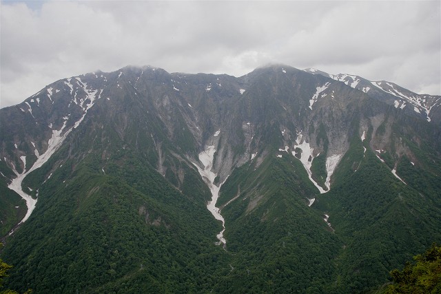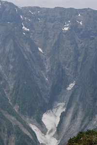 深い谷を隔てて反対側の谷川岳の展望です。真ん中の一ノ倉沢にはまだ多く雪渓が残ります。