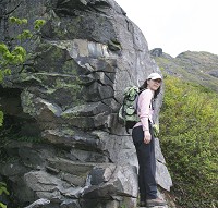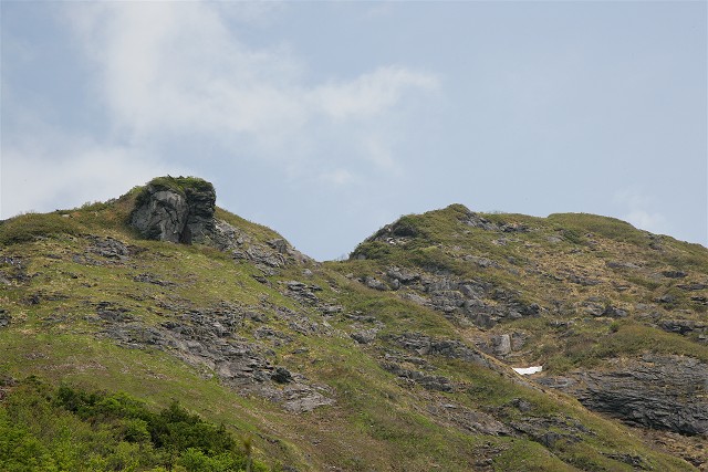 狭い稜線を登ってきました。大きな岩の横を通ります。