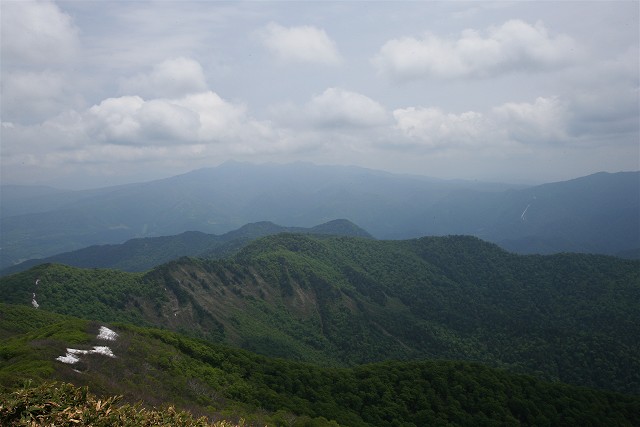 白毛門山頂から東側展望です。雲がかかっていますが一番高い日光白根山を初め、至仏山、上州武尊山などが見えています。