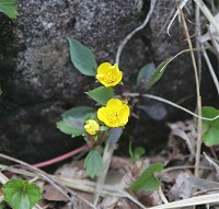 岩の陰に咲いていた花、鮮やかな黄色に目を奪われました。