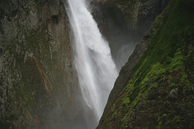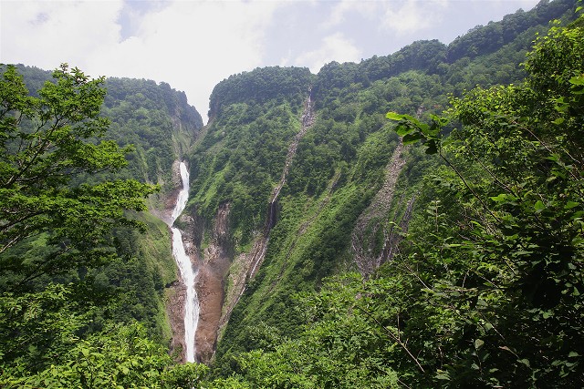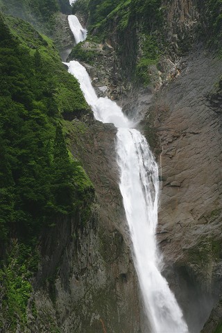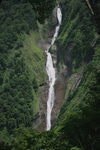 八郎坂の滝を望む展望台から望遠レンズで撮った称名滝です。