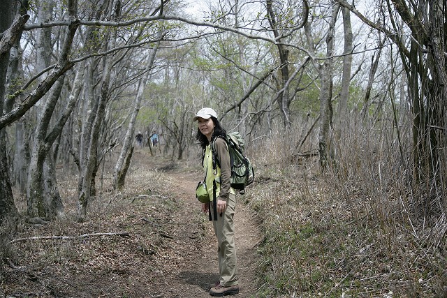 柔らかそうな若葉が出ていましたが、稜線付近のブナの林ではまだ芽吹いたばかりのブナの葉に出会いました。谷から稜線へ