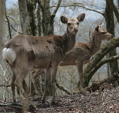 鹿に出会いました。まだあどけない表情から小鹿でしょうか? 丹沢の鹿は人を見ても逃げません。ずっと鳴いていたので親を呼んでいたのかな?