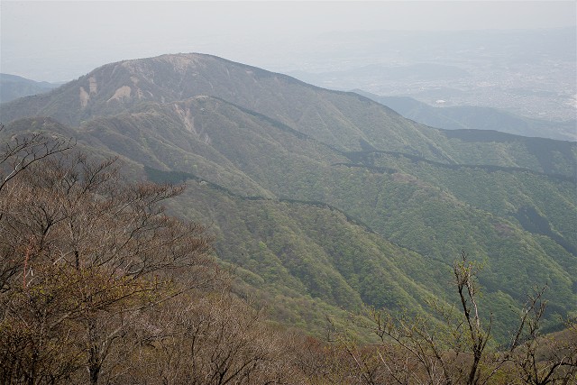 山頂はもうすぐです。三ノ塔方面の展望ですが、海岸や街は春霞の中、はっきりと見えませんでした。